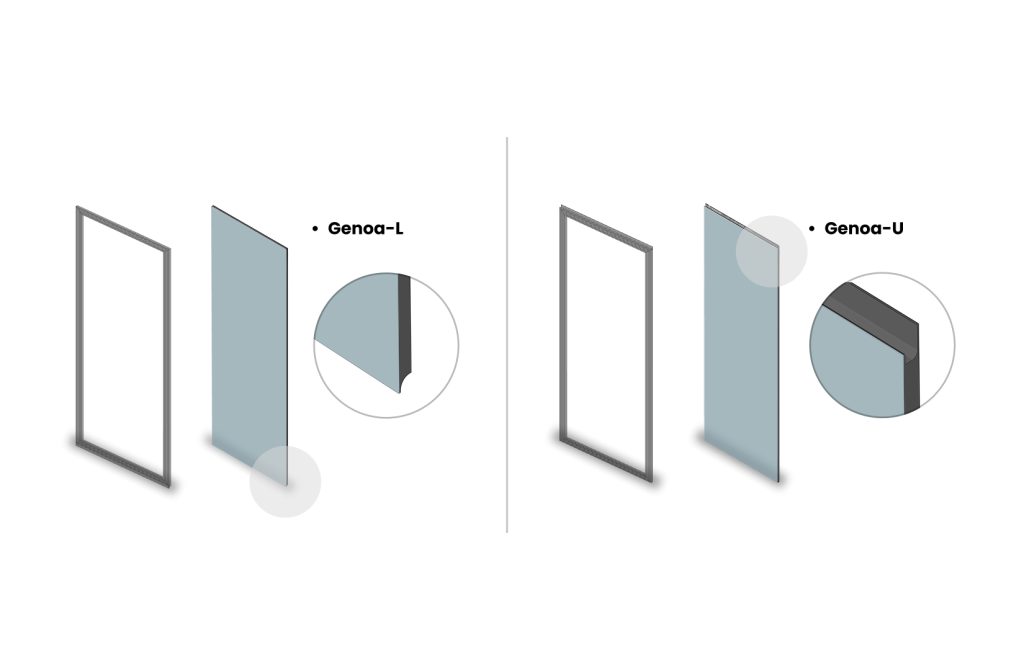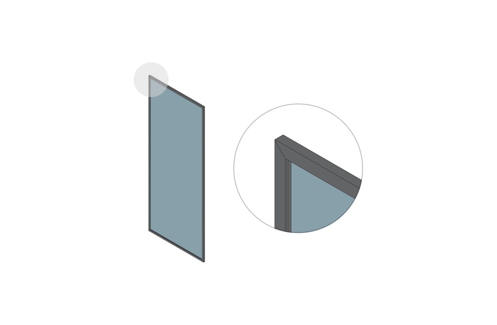 A sleek side structure made of a wider aluminum profile and glass.